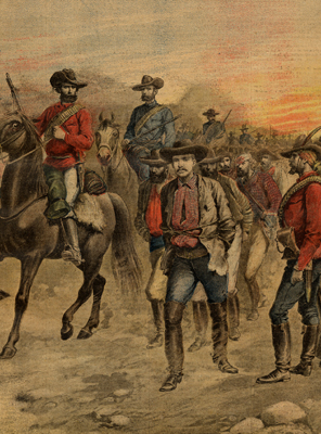 Dans A Mantis Carol, publié beaucoup plus tard, Laurens van der Post revient encore une fois aux Bushmen avec une histoire pleine de magie et de rêve où apparaît la Mante Religieuse, un des mythes des Bushmen, un esprit de la chasse, un protecteur. Elle met en scène un Bushman complètement perdu quelque part en Amérique du Nord et qui enchante pourtant tout son entourage. Supplément du Petit journal Illustré du 18 janvier 1896. Le Docteur Jameson prisonnier des Boers