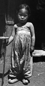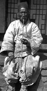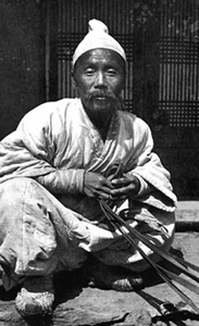 Mais Jack London a aussi profité de son séjour pour photographier les Coréens, la plupart jetés sur la route par la guerre. Et quand on regarde ces photos en détail on voit bien que London n’est pas un simple technicien photographe mais un homme qui est d’abord intéressé par ce qu’il y a d’humain dans les personnages qu’il fixe toujours de très près avec son objectif. Une fillette jetée à la rue par la guerre, de petits mendiants, beaucoup de portraits de vieillards, l’un d’eux avec sa longue pipe traditionnelle.